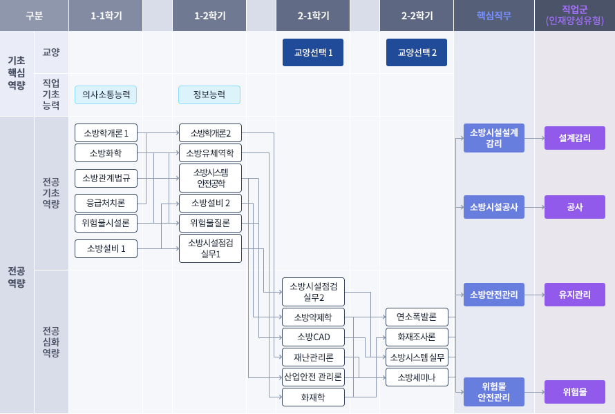| 전공실무 | 소방안전관리 | 소방시스템 CAD | 화재·피난 시뮬레이션 | 소방법규실무 | 소방시설실무 |